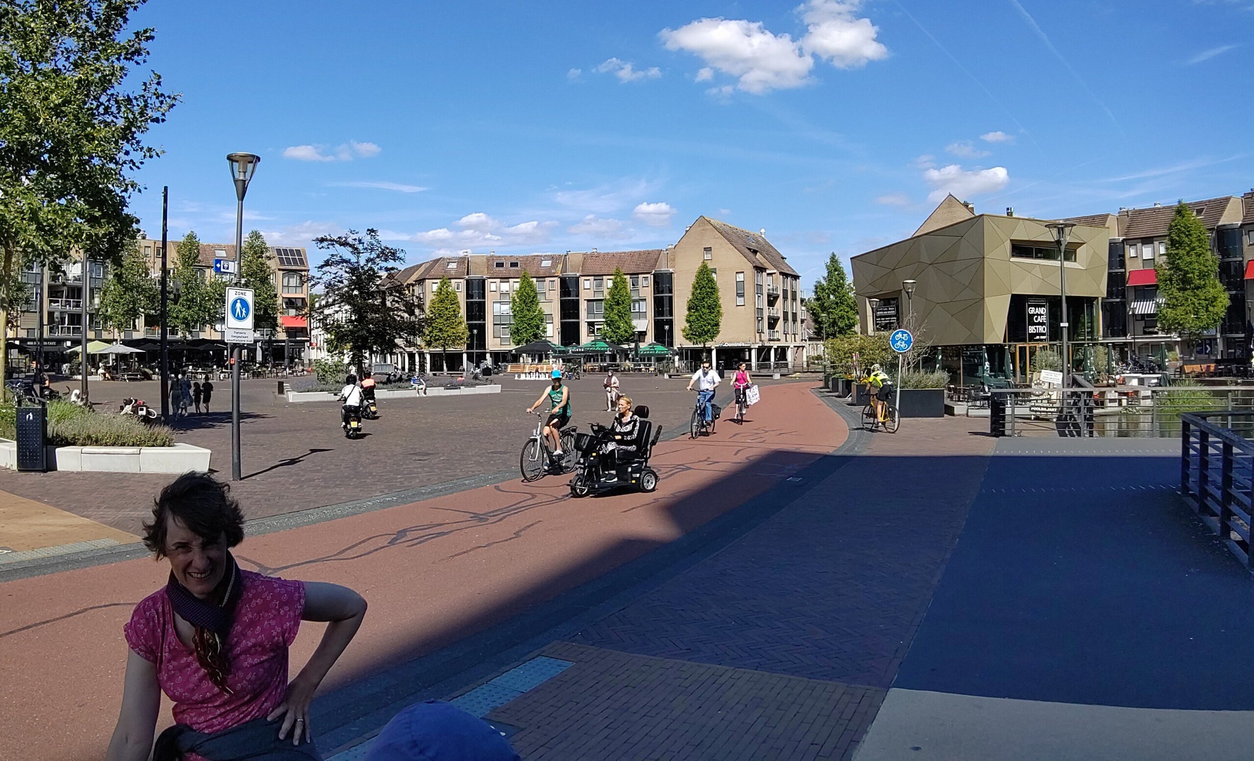 (6) Ein bisschen Retortenstadt-Feeling haftet dem Zentrum an. Aber verglichen mit deutschen, autozentrierten Planstädten ist das Zentrum durch den dichten Fuß- und Radverkehr sehr lebendig.